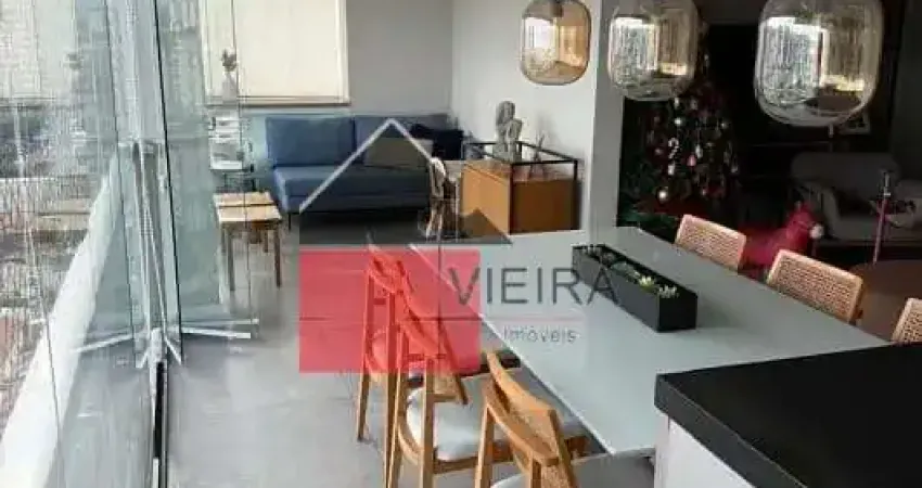 Apartamento mobiliado (porteira fechada) com planta bem distribuída, 130m², composto por 3 suítes amplas, sendo a suíte master com closet (antigo 4°dormitorio). Possui sala espaçosa integrada com sacada gourmet com excelente iluminação e ventilação natural. Varanda gourmet com churrasqueira à carvão, ideal para momentos de lazer com amigos, cozinha equipada e área de serviço ampla com banheiro para funcionária, além de ar-condicionado e armários planejados nos quartos, cozinha e área de serviço. Conta ainda com 2 vagas de garagem.