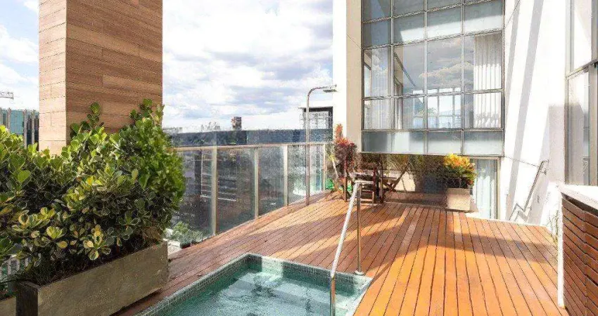 Cobertura duplex de 510 m² em localização privilegiada no Itaim Bibi. A planta reúne 3 suítes e 6 banheiros, além de ambientes que equilibram sofisticação e conforto, como sala íntima, home theater e terraço. A área externa é marcada pela piscina com vista panorâmica e churrasqueira, criando um cenário perfeito para receber. O condomínio oferece jardim, piscina coletiva e salão de festas.