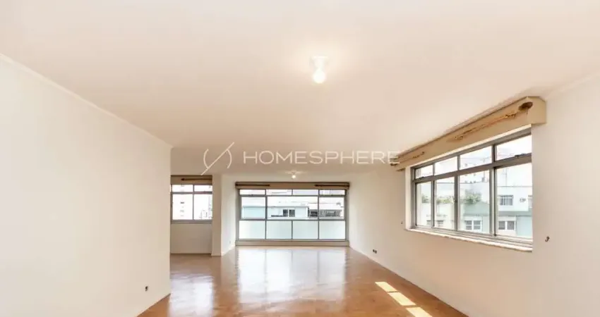 Apartamento um por andar, no coração dos jardins. Área de 210m2, 3 dormitórios e duas vagas de garagem.