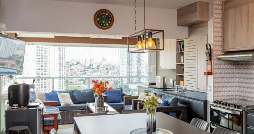 Com vista panorâmica, a sala espaçosa com cozinha integrada une praticidade e estilo, criando um ambiente perfeito para receber amigos e familiares.