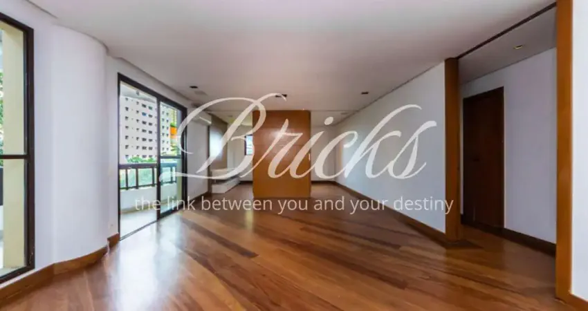 Apartamento Duplex com 198m² em Moema, com 3 suítes, 2 vagas de garagem, lavabo, sacada, suíte principal com closet e banheira, ar condicionado nas suítes, quarto e banheiro de serviço. No andar superior ficam as 3 suítes e um sala intima que pode ser transformada em escritório ou espaço de leitura. No andar inferior temos uma sala ampla para 2 ambientes, com espaço para adega, cozinha com ventilação natural e armários brancos planejados.