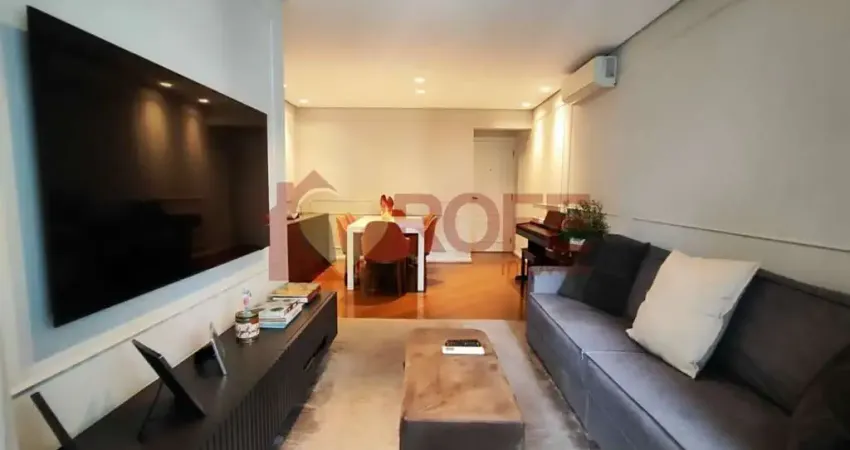 Apartamento totalmente reformado e decorado, com acabamento de alto padrão, excelente distribuição interna e localização privilegiada em Moema Índios, um dos bairros mais valorizados de São Paulo.