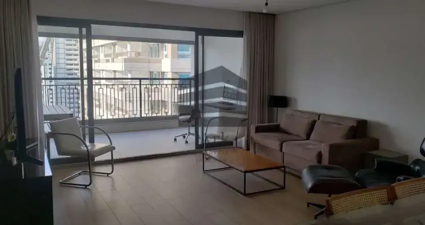 Apartamento mobiliado de 149 m² no condomínio Moema by Cyrela, com 3 quartos sendo os 3 suítes, 5 banheiros e 2 vagas de garagem. Possui ampla sala integrada à varanda gourmet e cozinha equipada.
