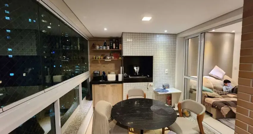 Com 90M², sala para 2 ambientes, terraço Gourmet com churrasqueira a carvão fechado com vidro, cozinha com entrada de serviço, 3 dormitórios sendo 1 suíte, área de serviço com banheiro para funcionários, moveis planejados em todos os ambientes, lavabo, + 2 vagas de garagem.