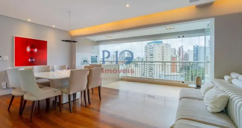 Com 125M², 3 suítes sendo 1 master, sala para 3 ambientes, terraço Gourmet com churrasqueira a carvão e forno de pizza, fechado com vidro e excelente vista, cozinha em conceito aberto com ilha, área de serviço com entrada individual, banheiro e dormitório para funcionários, piso em taco em todo o apartamento, móveis planejados em todos os ambientes, 3 vagas de garagem + deposito privativo.