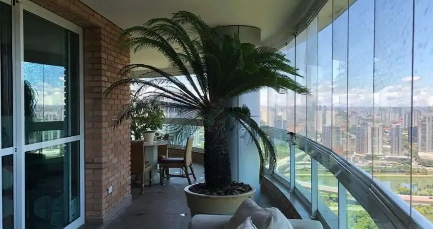 Com 368M², 3 suites sendo 1 master ampliada, sala para 3 ambientes, terraço amplo com excelente vista para área verde e Palácio do Tangara, área gourmet com churrasqueira, cozinha com excelente iluminação e ventilação natural, área de serviço com banheiro e dormitório para funcionarios, 6 vagas de garagem + deposito privativo.
