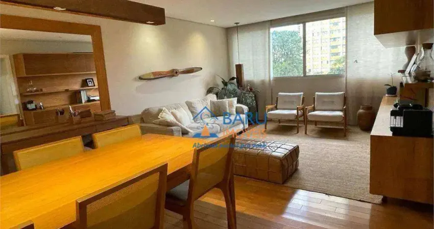 Apartamento de 116 m2 com vista permanente para o parque arborizado da Sabesp. Janelas amplas, pegando a extensão total dos ambientes. 3 dormitórios com 3 banheiros, sendo um de serviço. Dormitório do casal com ar condicionado quente e frio, closet amplo e banheiro, mais dois dormitórios generosos, também com vista para o parque. Banheiros com bancadas, cubas esculpidas e revestimento dos pisos e nichos dos boxes em mármore espanhol. Espelho com iluminação de led e desembaçador. Quartos, corredor e sala com piso de madeira maciça Tauari em excelente estado de conservação! Cozinha, área de serviço, despensa e banheiro de serviço com porcelanato. Cozinha com ótima distribuição, contando com ilha para preparo de alimentos e refeições. Bancadas em granito branco itaúnas e ampla abertura para a sala, com dois painéis deslizantes, que permitem o fechamento total. Cozinha equipada com fogão na ilha, conjunto de geladeira e freezer, maquina de lavar louças e micro-ondas. Sistema de aquecimento de água por aquecedor de passagem a gás. Iluminação da cozinha e área de serviço com painéis de led. Sala e corredor com forro de gesso e luminárias embutidas no frame de led. Cortineiro com fita de led embutida, possibilitando iluminação indireta difusa, bem aconchegante. Apartamento desenhado pelo casal de arquitetos, com linguagem bem clean e móveis elaborados por marcenaria de primeira linha. Na sala temos um grande móvel revestido em folha de lâmina natural de freijó, com portas ripadas, sendo as portas da parte inferior, vazadas para permitir o controle dos equipamentos de tv. No corredor temos dois móveis camuflados por painéis em laca fosca branca, sendo um roupeiro e outro que era utilizado para materiais de escritório. No primeiro quarto temos dois grandes armários em laca branca fosca, sendo um com nicho central em lâmina natural, fita de led e infra para tv. Quarto do casal conta com um grande armário tb camuflado por painéis frisados e ao redor da cama, mais um armário com portas e nicho de cabeceira e iluminação por fitas de led. Extenso móvel de apoio para a tv com um linha de gavetas e abaixo uma enorme sapateira. Este tb revestido externamente em laca fosca branca.