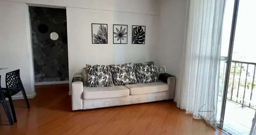 O living comporta 2 ambientes, com carpete de madeira e ótima circulação. São 3 dormitórios, sendo 1 suíte, além de banheiro com box. A cozinha é funcional, possui área de serviço integrada e armários planejados, garantindo praticidade no dia a dia.