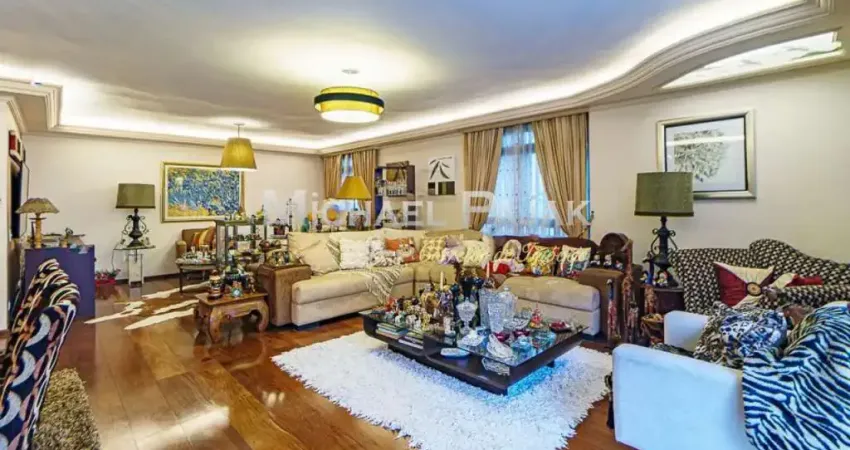 Um condomínio para quinze famílias numa única torre. Hall social com charme de antessala e linda porta decorativa com acesso para a ampla sala de três ambientes com piso em madeira. Projeto de iluminação em LED com sancas e lustres de qualidade trazendo aconchego. Sofisticação é a principal característica desse imóvel para receber seus amigos e familiares. Varanda envidraçada com vista livre. Estamos no 1° andar com as características de rua arborizada que a região proporciona. Lavabo decorado para os convidados com claraboia e iluminação natural. Sala de almoço bem confortável num espaço otimizado para os momentos gostosos do dia a dia. Cozinha planejada e equipada com lava-louça, micro-ondas e fogão. Num aconchegante espaço que pode ser utilizado para serviço ou home-office, um quarto e um banheiro integrado à espaçosa lavanderia. Outra característica é o sol! Entrada de serviço. A área íntima conta com três confortáveis suítes, uma delas com closet e varanda. Essa privacidade conta com uma linda árvore de pitanga. Esse apartamento está planejado com armários de qualidade, nas suítes e corredor. Esta unidade possui três vagas de garagem fixas e um depósito privativo ao lado de uma das vagas, um lugar ideal para guardar objetos que não são usados diariamente.