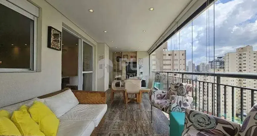 3 suítes com armários (Master contém closet), sala ampla para 3 ambientes, lavabo, varanda gourmet ampla com fechamento em vidro, cozinha com copa, forno, cooktop, coifa e armários, área de serviço com armários e despensa, depósito privativo e 2 vagas de garagem fixas.
