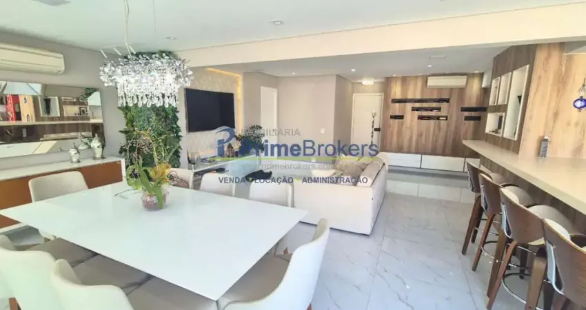 Porteira fechada, 3 suítes, sala três ambientes, varanda gourmet, mobiliado, móveis planejados, ar condicionado central, marcenaria alta padrão, closet, churrasqueira, despensa, banheiro de serviço, lavabo, alarme