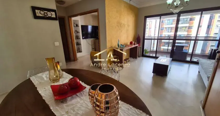 Apartamento excelente, com 133 mts de área útil, sendo sala 3 ambientes, lavabo, varanda, ampla cozinha, 3 suítes, área de serviço com dependência de empregada, 3 vagas de garagem fixas + depósito privativo.