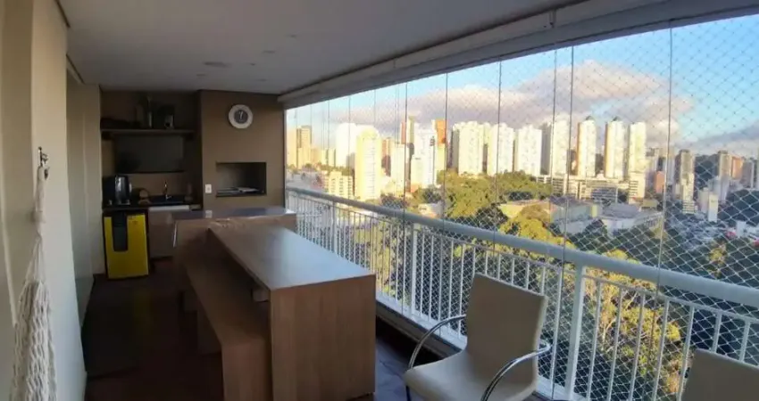Apartamento com 3 dormitórios sendo 3 suítes, Hall social privativo, sala 3 ambientes com teto rebaixado e projeto de iluminação, terraço Gourmet com churrasqueira, cozinha espaçosa com armários planejados e pia com cuba dupla, área de serviço com banheiro e dormitório para empregados, 4 vagas + deposito privativo no subsolo.