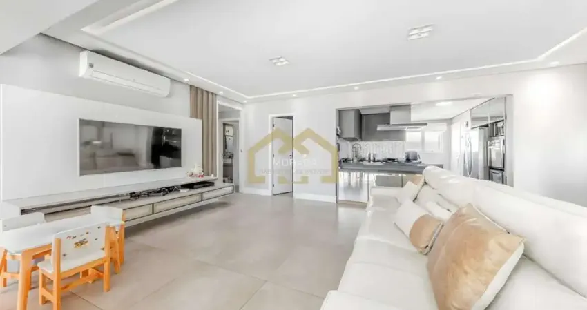 Apartamento com 3 suítes, 5 banheiros, 2 vagas de garagem.