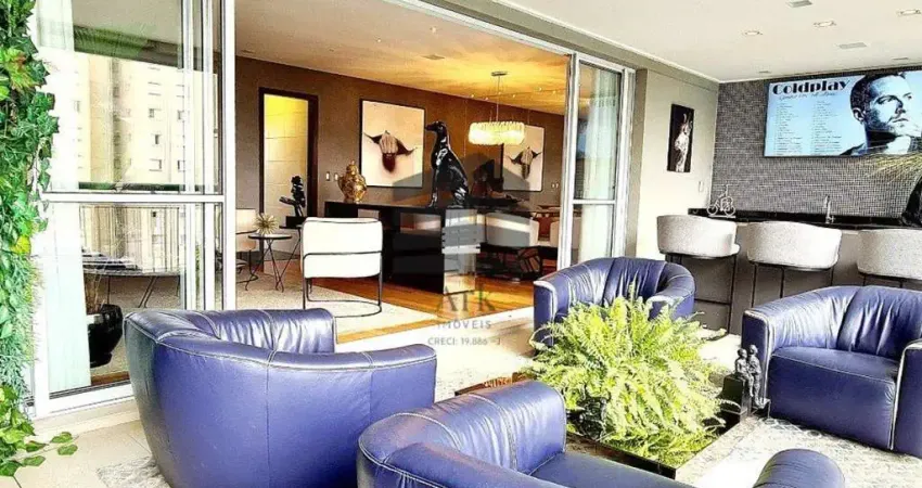 Na varanda gourmet mais um ambiente de estar com 4 poltronas italianas belíssimas compondo um ambiente muito especial com tapete e mesa de centro.