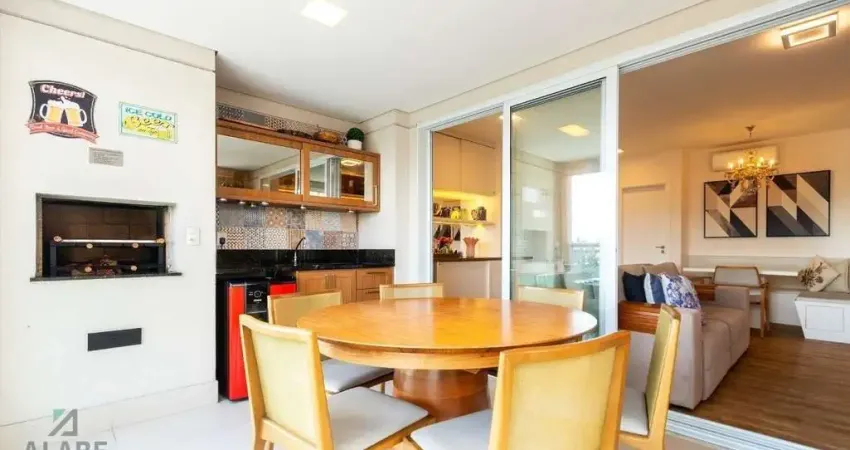 Varanda gourmet com churrasqueira para momentos de lazer e vista incrível da cidade