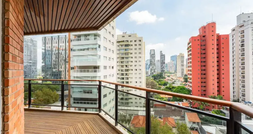 LEFPR: Venda, apartamento reformado com terraço, vista e muito sol na Vila Nova Conceição. Conta com hall privativo, sala de estar abre para terraço, lareira, ar-condicionado e janelas de vidro duplo, isolamento de som, sala de jantar com janelas, na sala de estar e por todo apartamento com caixas de som embutidas. A sala de TV segue o padrão de janela balcão e ar-condicionado, home theater com telão. Na área íntima há um espaçoso home (link removido) os quartos com armários, a suíte master com closet espaçoso, banheira, penteadeira, aquecimento de água à gás. A cozinha com ilha gourmet, nichos para os equipamentos, lava-louça. A lavanderia é bem funcional, conta com bastante marcenaria e com dormitório e banheiro.