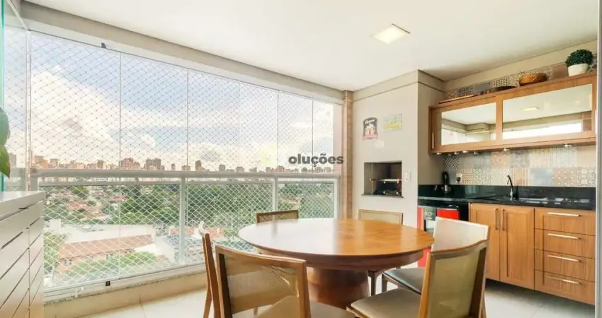 O imóvel conta com 109 metros quadrados, com 3 dormitórios sendo 1 suíte, 2 banheiros, sala ampla para 2 ambientes, varanda gourmet, churrasqueira, cozinha com armários, ar-condicionado na sala e nos quartos, 4 câmeras de segurança, área de serviço, lavabo, e 2 vagas de garagem escrituradas.
