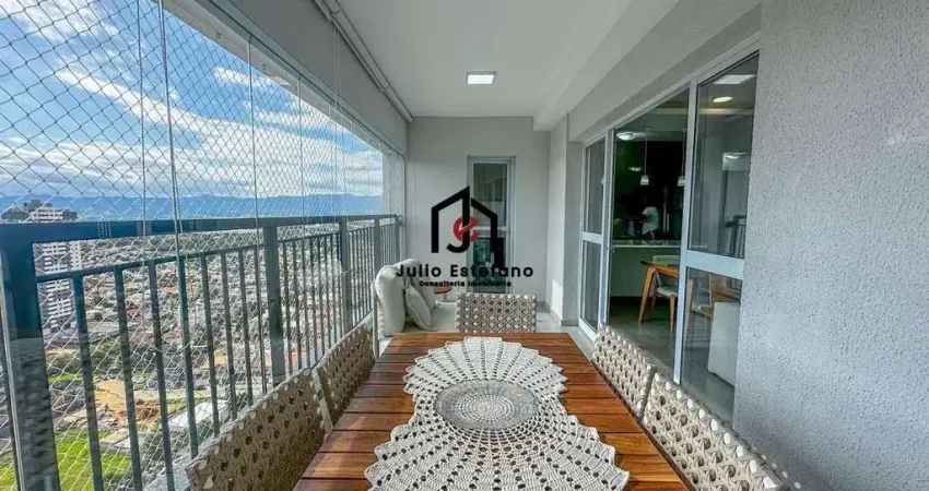 Apartamento moderno e mobiliado com vista deslumbrante para a Serra da Mantiqueira.