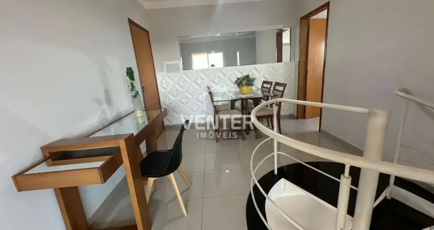 Apartamento duplex, com 3 dormitórios, sendo 1 deles suíte; banheiro social, lavabo; armário planejado na cozinha; armários nos dormitórios. Área de serviço com armários, Piso superior com churrasqueira, jacuzzi, fechamento de vidro. 1 vaga de garagem. Próximo a serviços como escola e outros serviços, como ponto de ônibus,
