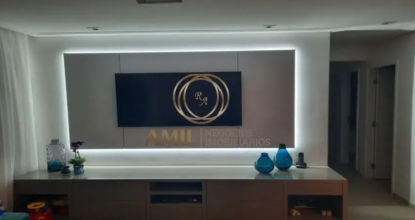 Lindo apartamento com 104m2 com sala ampliada com rack planejado, cozinha e área de serviço planejados, 3 quartos sendo 1 suíte e 2 banheiros planejados. Sacada gourmet com cortina de vidro. 2 vagas de garagem cobertas