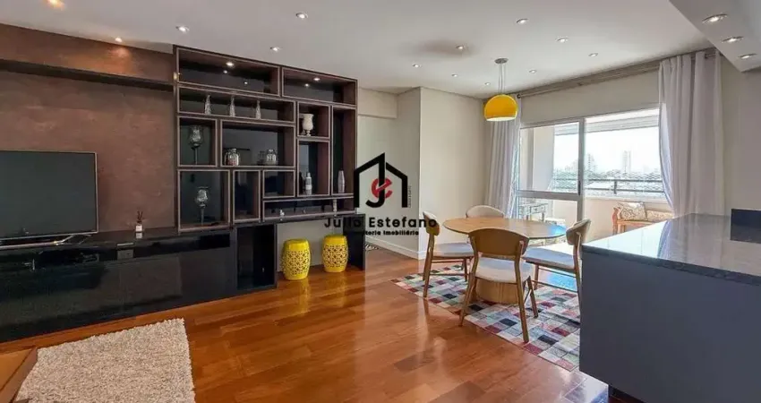 A sala espaçosa se conecta à sacada envidraçada com churrasqueira, criando um espaço perfeito para relaxar ou receber visitas com privacidade e aconchego. A cozinha americana planejada facilita a rotina e traz praticidade à convivência. Os três dormitórios, sendo uma suíte, contam com armários planejados, otimizando cada centímetro e reforçando a sensação de organização.