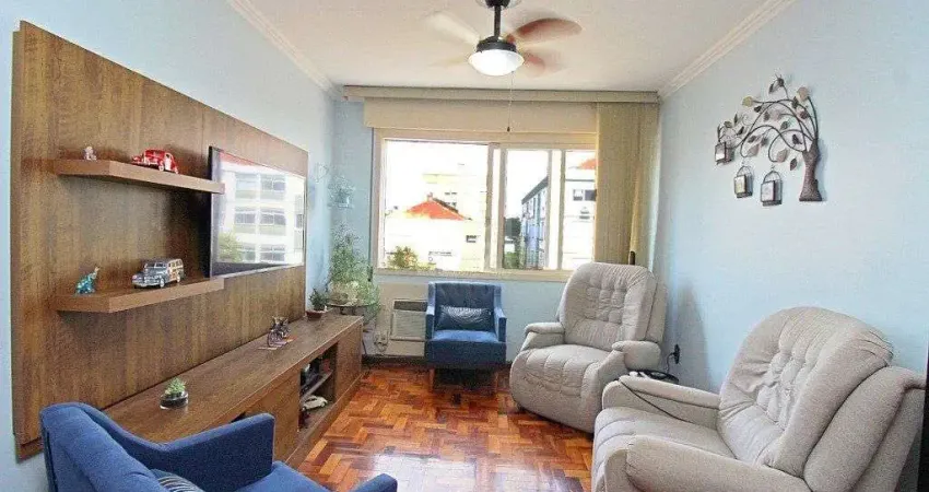 Vende-se apartamento reformado, climatizado, 3 dormitórios, banho social, ensolarado, copa e cozinha, área de serviço independente, dependência de empregada, banheiro auxiliar, living amplo em 2 ambientes amplos e com lareira. Permanecem todos os móveis fixos.