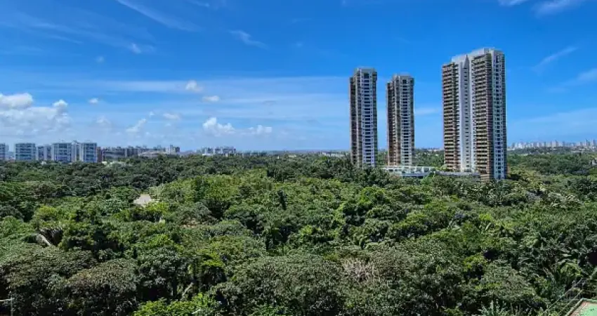 More em plena natureza com um amplo apartamento de 180m2, 4 suites, lavabo, varanda integrada com a cozinha, churrasqueira a carvão, 3 vagas de garagem, andar alto, vista lindíssima para o verde do bairro: Greenville- Patamares, Salvador BA.