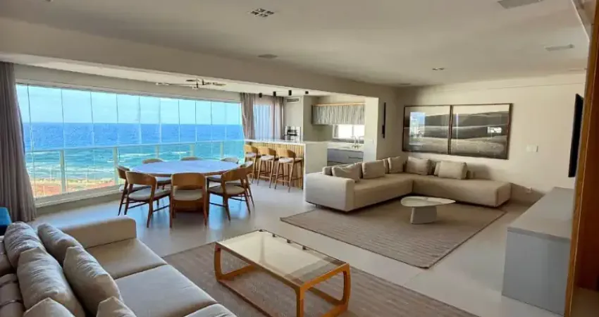 São 200m², nascente, vista mar, varanda integrada à sala a qual conta com 2 ambientes, sala de estar e jantar, lavabo, cozinha, área de serviço e 4 vagas de garagem.