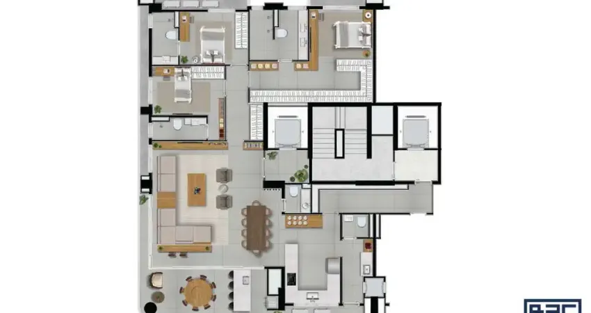 • 04 Suítes Plenas com Varandas, sendo Master com Closet e Cuba dupla