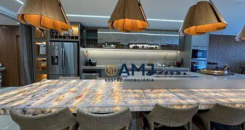 A cozinha integrada à sala e à área gourmet cria um ambiente moderno e acolhedor, perfeito para receber amigos e familiares.