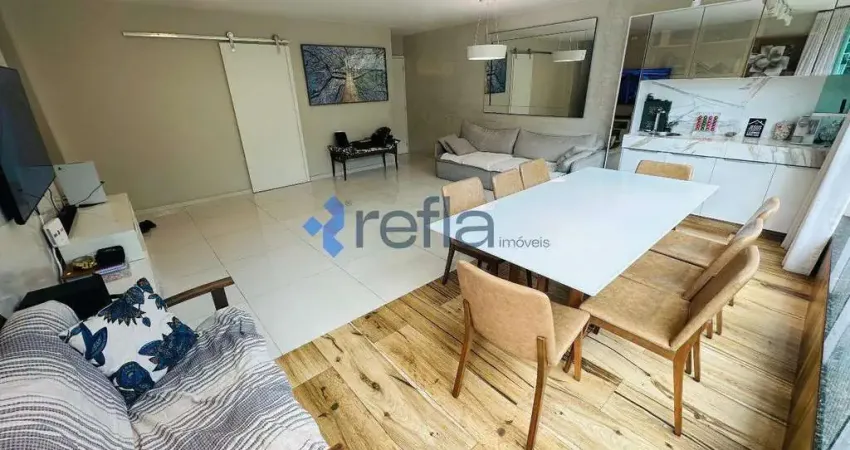 Sala ampla, bem iluminada, integrada à varanda gourmet