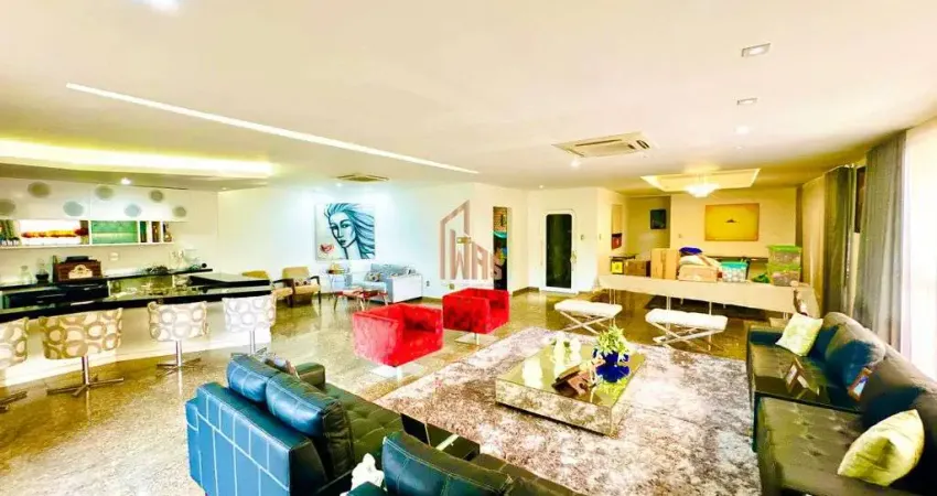 Este apartamento exclusivo possui impressionantes 510m² de área privativa, com apenas 1 unidade por andar, garantindo total privacidade. Totalmente mobiliado e pronto para morar, o imóvel conta com quatro quartos, sendo três suítes amplas, Sendo um quarto atualmente transformado em uma academia privada. A área social impressiona com uma sala de estar com mais de 100m², integrada a três sacadas generosas, proporcionando excelente ventilação cruzada e iluminação natural. A sala de jantar é elegante e bem definida, complementada por um bar sofisticado, ideal para receber convidados. A cozinha é ampla, totalmente equipada, com churrasqueira integrada, além de área de serviço independente, lavanderia funcional e dependência completa de empregada. O apartamento dispõe ainda de quatro banheiros e três vagas de garagem.