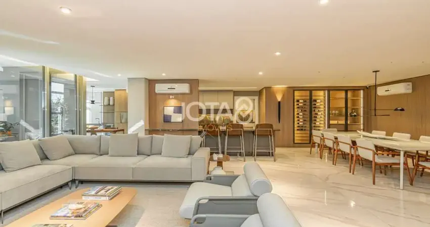 A cozinha gourmet integrada à sala de estar proporciona um ambiente moderno e acolhedor, ideal para receber amigos e família. A sacada com churrasqueira convida para momentos de lazer com uma vista definitiva e deslumbrante para o Parque Barigui.