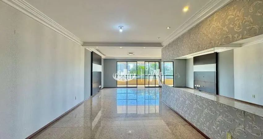 Apartamento com 266 m², 4 quartos sendo 2 suítes, incluindo suíte master com closet e banheiro para duas pessoas. Sala em dois ambientes com home theater, varanda com churrasqueira, ambientes climatizados e 3 vagas de garagem.