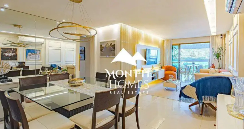 Apartamento de alto padrão com 148 m² de área privativa, de frente para a lagoa, no condomínio Rio 2, na Barra da Tijuca. Ambientes amplos, iluminados e bem distribuídos, com projeto moderno.