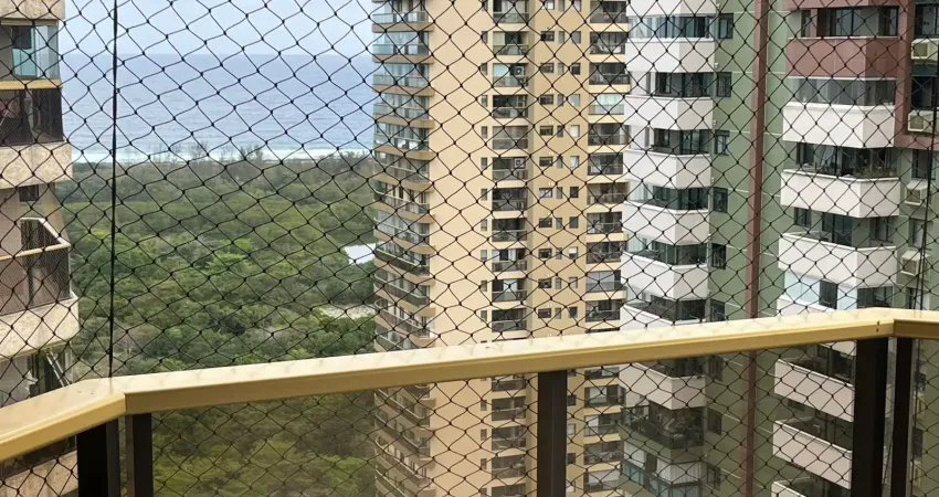 Maravilhoso apartamento em andar alto, com vista mar e alto padrão de acabamento e vista livre em condomínio em localização privilegiada na Barra da Tijuca. São 160m² com ampla sala, ampla varanda, 4 quartos sendo 2 suítes, banheiro social, lavabo, cozinha planejada com área de serviço e dependência completa. Armários. Ar condicionado Split. Iluminação indireta. 3 vagas de garagem cobertas e vaga de visitante. Condomínio com lazer super completo, ônibus, balsa para a praia e portaria com segurança 24 horas.