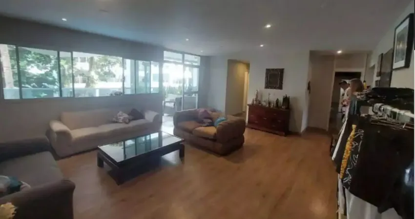 São 215 m2 assim distribuídos: 2 amplas salas de estar e jantar , 4 quartos sendo uma suíte , 1 banheiro social, 1 lavabo, cozinha com copa, duas dependências completas, área de serviço com acesso por entrada e elevador exclusivos . Grandes janelas nas laterais proporcionam uma ventilação cruzada . Da varanda com piscina é possível contemplar os jardins ao som de canto de pássaros. Uma delícia! 2 vagas de garagem. Consumo de água incluída na cota de condomínio. Edifício com poucos pilares o que possibilita diversas alterações no projeto original.