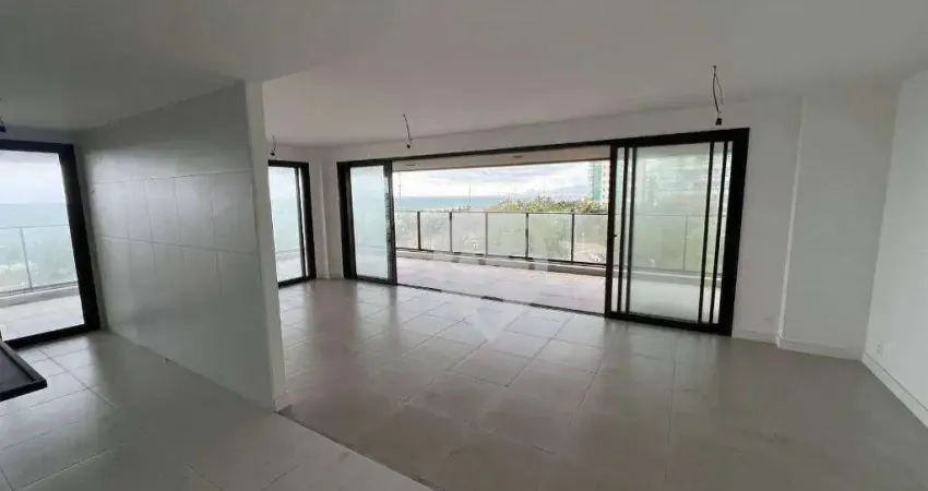 Barra da Tijuca- Apartamento com vista mar frontal com sala em 2 ambientes uma ampla varanda gourmet, cozinha conceito aberto, área de serviço dependências completas, 4 suítes sendo 2 canadenses, 3 vagas. Prédio recém entregue com área de fitness, espaço para festas, playground, espaço gourmet, jardim.