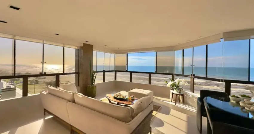 Cobertura duplex à Beira Mar de Capão da Canoa! Com uma vista cinematográfica para o mar, finamente mobiliada e decorada. Sendo composta por 4 dormitórios, sendo 2 suítes (1 suíte máster com banheira de hidromassagem), banheiro social, lavabo, amplo living em 3 ambientes, cozinha americana, área de serviços e na parte superior espaço gourmet completo com churrasqueira, terraço Leste Norte Oeste com piscina aquecida privativa, 3 vagas de estacionamento. São aproximadamente 393m² de área privativa, finamente mobiliada e decorada, alto padrão de acabamentos, piso porcelanato, rebaixada em gesso, climatizada, pronta para veranear morar! Edifício de esquina, alto luxo, hall de entrada decorado, 2 elevadores, gás central, portaria 24hrs, portão e porteiro eletrônicos, zeladoria permanente. Localização privilegiada, à beira mar de Capão da Canoa, junto a Divisa de Atlântida. ÓTIMAS CONDIÇÕES DE NEGOCIAÇÃO - Estuda receber imóvel de menor valor mediante a avaliação - Estuda receber entrada + parcelamento direto com o proprietário. Agende sua visita com um de nossos corretores.