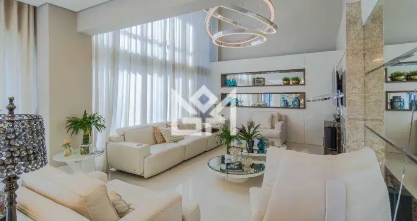 Apartamento mobiliado de alto padrão, com 4 suítes, amplo living com lareira para dois ambientes bem definidos, pé-direito duplo, sala de jantar e ambientes totalmente envidraçados, integrados a uma espaçosa sacada. Conta ainda com copa, cozinha gourmet, lavabo, dependência completa e 4 vagas de garagens independentes com depósito. Localizado em um empreendimento imponente no Jardim Europa, em frente ao Parque Germânia e próximo aos shoppings Iguatemi e Bourbon Country. O condomínio oferece infraestrutura completa para sua família: brinquedoteca, espaço gourmet, churrasqueira, fitness, piscina aquecida e infantil, hidro, spa com sauna, quadras poliesportiva e de tênis, playground, pet play, salão de festas, sala de jogos, praça, port cochere, depósito, elevadores e portaria 24h. Preço e disponibilidade do imóvel sujeitos a alteração sem aviso prévio.