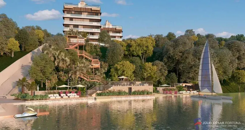 De frente para a lagoa, com mais de 3.000m² de lazer para toda a família: Praça, Playground, Espaço zen, Chafariz, Piscina aquecida com borda infinita de frente para a lagoa, Salão de festas, Espaço Gourmet, Academia, Brinquedoteca, Espaço Gamer , Quadra de Beach tênis, Quadra de Squash, Espaços Relax, Píer, Plataforma particular exclusiva dos moradores para Jet Ski, Praia Privativa e Áreas de Preservação.