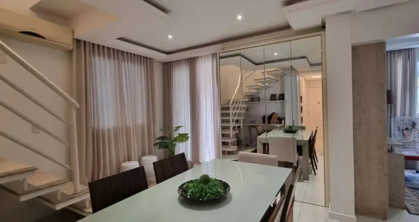 Duplex localizado no Centro, possui 129m² privativos, Tendo 4 dormitórios, sendo 2 suítes, 2 banheiro socia, no piso superior e um amplo living no piso inferior, sala de TV, sala de jantar e estar, cozinha, ampla área de serviço, lavabo e uma sacada, e um amplo terraço.