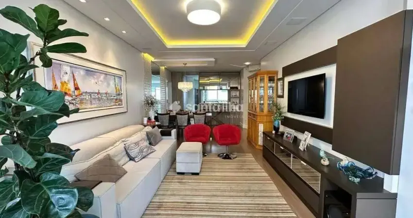 Apartamento em excelente localização com vista panorâmica, 4 dormitórios, sendo 2 suítes, sala, cozinha, sacada com churrasqueira, vista livre, split na sala e dormitórios, 3 vagas de garagem, água quente, área de serviço, moveis planejados, banheiro social, escritório, lavabo, sacada com churrasqueira, piso laminado e porcelanato.