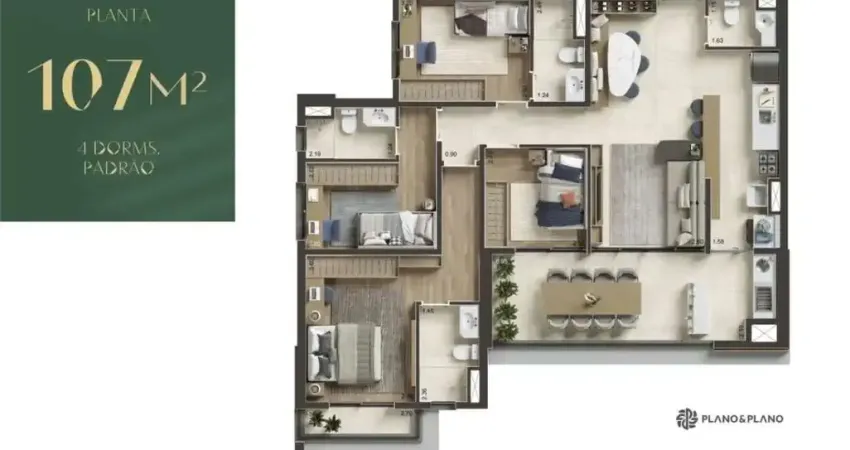 - Área de 107m²