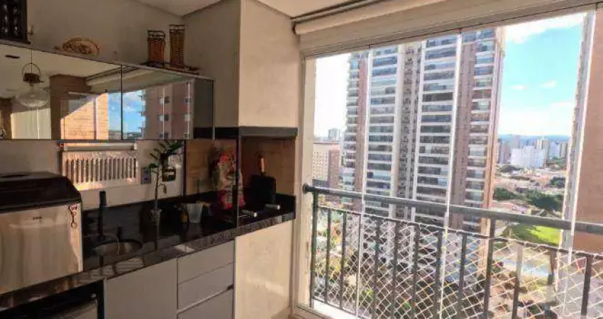 Varanda Gourmet envidraçada com churrasqueira e ambientes de estar. Piso porcelanato nas áreas frias e salas e vinílico atérmico nos demais ambientes.