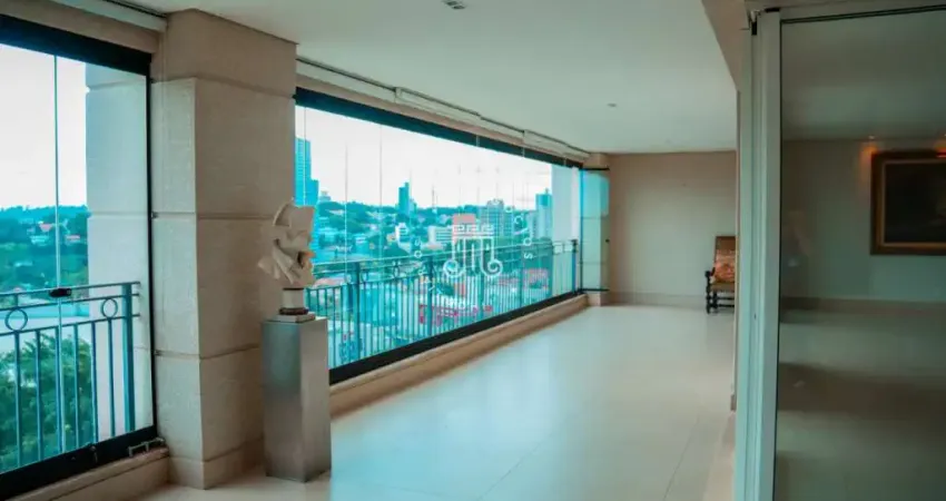 Apartamento amplo e sofisticado com 296 m² de área útil, ideal para quem busca conforto e exclusividade. O imóvel conta com 4 suítes, sendo uma delas com closet, oferecendo privacidade e comodidade para toda a família. A área social é composta por uma espaçosa sala para três ambientes `estar, jantar e sala íntima`, além de lavabo, banheiro social e terraço gourmet com fechamento em vidro, perfeito para momentos de lazer. A área de serviço é completa, com dormitório e banheiro de serviço, despensa, copa e cozinha planejada. O elevador possui entrada privativa diretamente no hall do apartamento, garantindo mais segurança e praticidade. O imóvel conta ainda com terraço técnico, ar-condicionado central e 4 vagas de garagem.