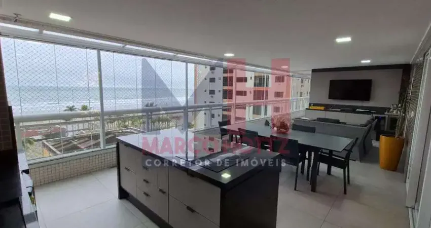 Apartamento de alto padrão à venda no Canto do Forte em Praia Grande, fino acabamento, prédio com infraestrutura e área de lazer diferenciada, contendo 04 suítes com sacadas sendo 01 suíte máster com hidro, sala ampla com ambientes aconchegante, cozinha com gás encanado, área de serviço separada com banheiro se serviço, despensa, lavabo, varanda gourmet com churrasqueira e pia, 03 vagas de garagem, linda vista do mar, vista livre, cômodos espaçosos com 250 m² de área útil, bem claro e arejado.