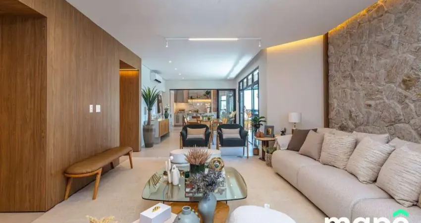 Com 291 m² de área útil (446 m² de área total), o imóvel apresenta um projeto arquitetônico sofisticado e uma distribuição impecável: são 4 suítes espaçosas, todas com closet, além de um escritório que também funciona como sala de TV. A ampla varanda gourmet com churrasqueira oferece vista para o mar, criando um espaço perfeito para receber convidados. O acesso é ainda mais privativo graças ao elevador com código exclusivo, e o imóvel conta com 4 vagas de garagem amplas e privativas.