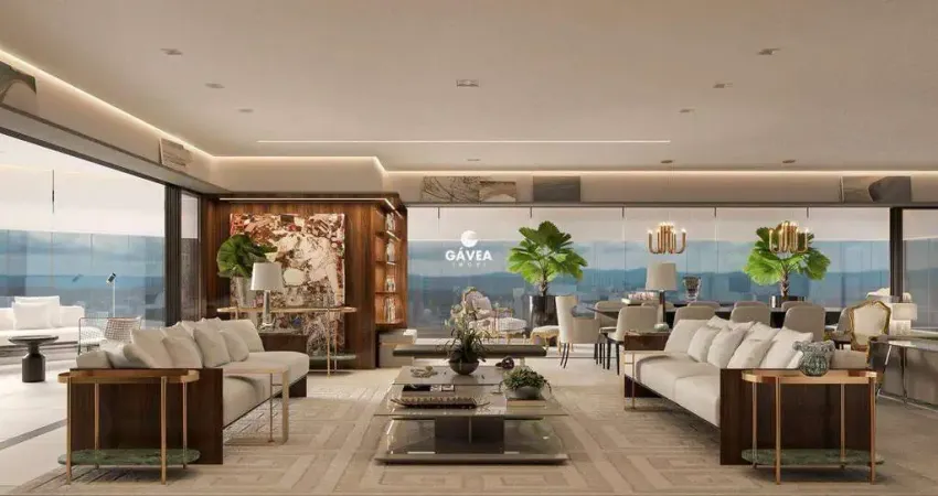 Os apartamentos possuem 501 m² de área útil, 4 suítes e 6 vagas de garagem. Apenas uma unidade por andar e vista livre total.